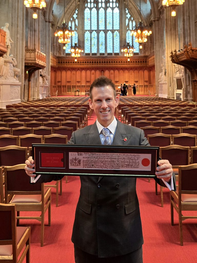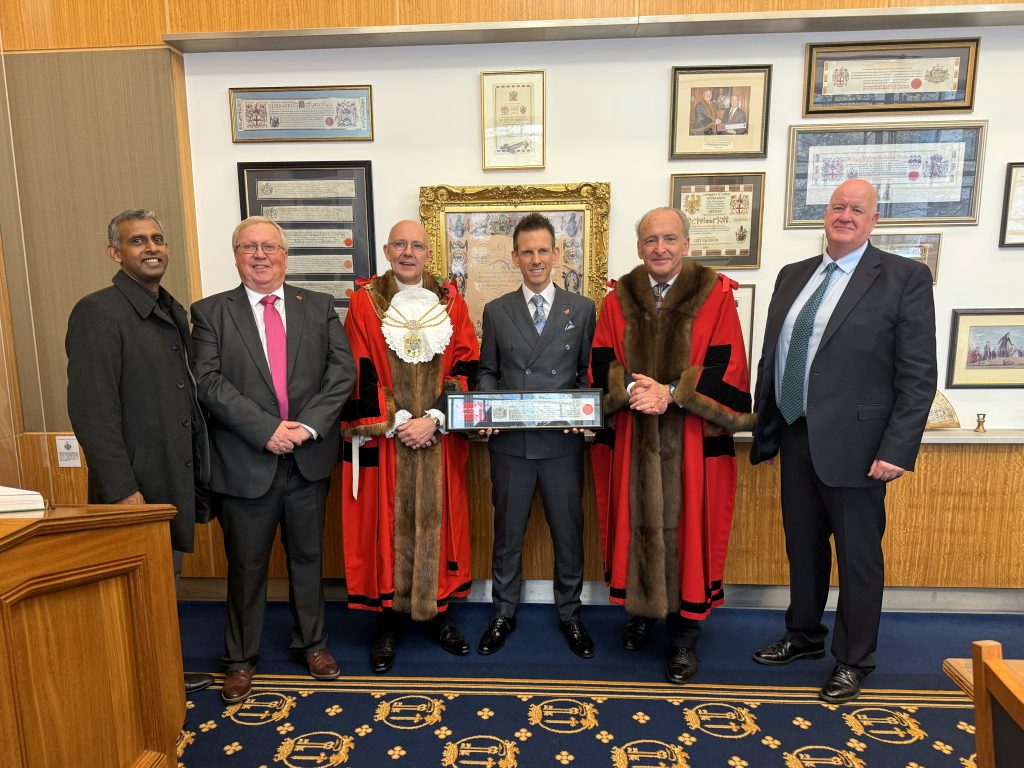 Mark was nominated by Sir Charles Bowman, 690th Lord Mayor of the City of London, and Sheriff Keith Bottomley CC, and attended his ceremony at the Chamberlain’s Court in Guildhall alongside family and close friends.